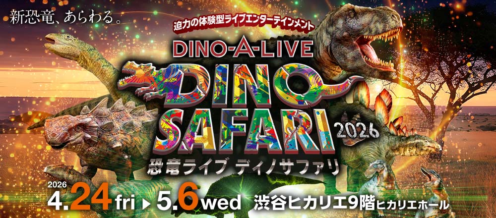 毎年GWに渋谷ヒカリエで開催されている「DINO SAFARI」がついにアリーナツアーに!! 恐竜が多数出没するという「サファリフィールド」が日本中に同時多発出現。参加者はサファリガイドや恐竜レンジャー隊とともに、「GIGANT」と呼ばれる広大なサファリフィールドで過去最大規模の恐竜たちの出現に遭遇する。