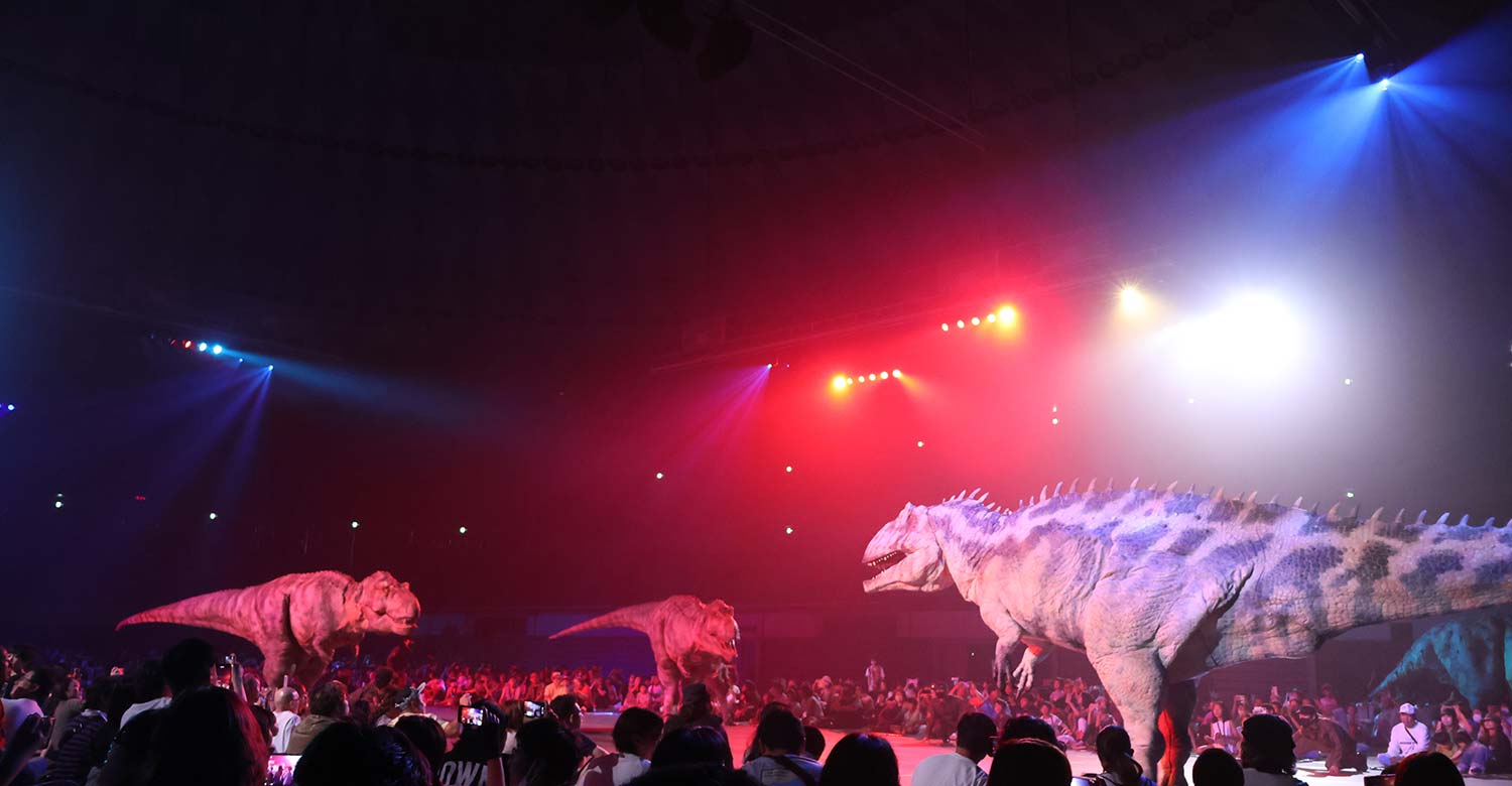 毎年GWに渋谷ヒカリエで開催されている「DINO SAFARI」がついにアリーナツアーに!! 恐竜が多数出没するという「サファリフィールド」が日本中に同時多発出現。参加者はサファリガイドや恐竜レンジャー隊とともに、「GIGANT」と呼ばれる広大なサファリフィールドで過去最大規模の恐竜たちの出現に遭遇する。そしてその最奥で新たに発見された最恐・最強の肉食恐竜とティラノサウルス兄弟との決戦を見届ける事に!